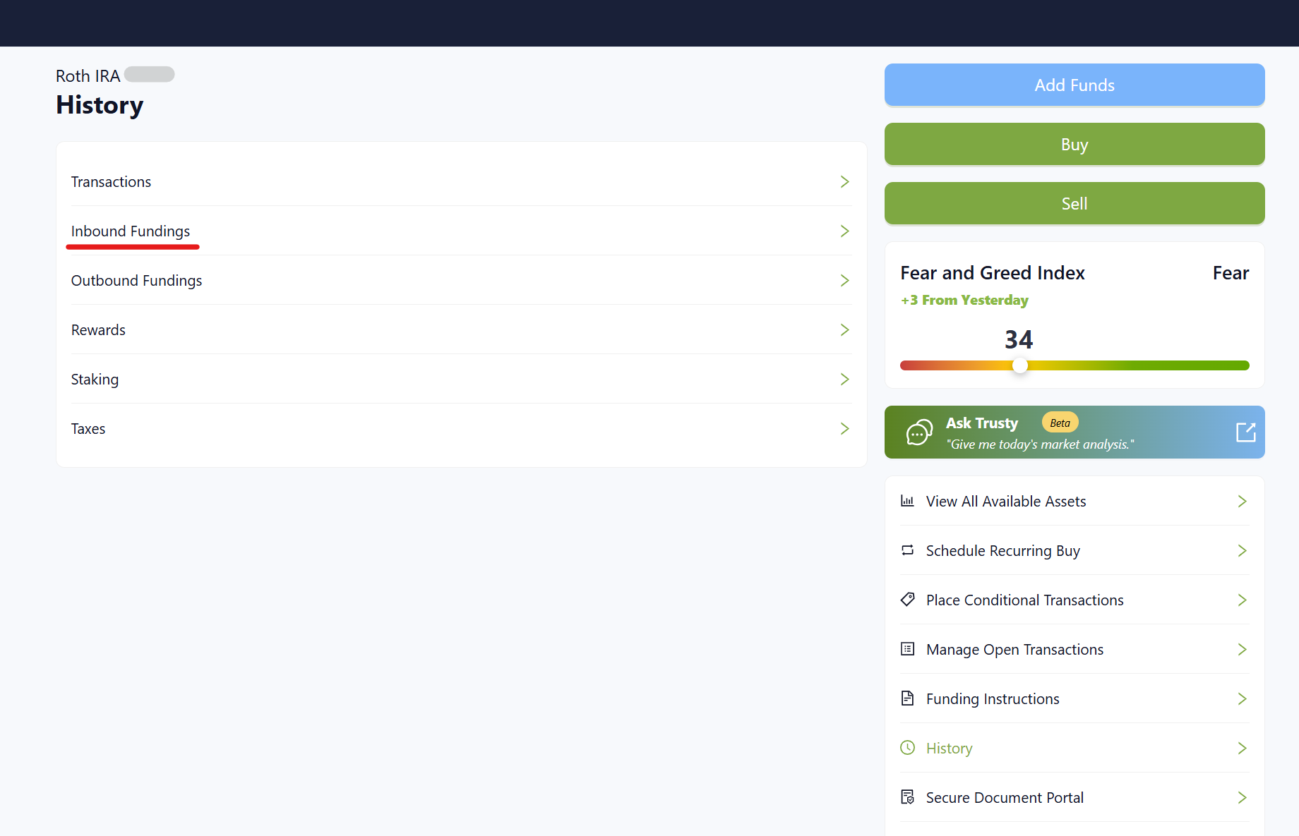 1. Go ahead and click on your relevant IRA in your iTrustCapital dashboard.